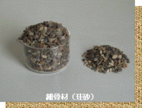 「珪石」とは、二酸化珪素(SiO2)を80%以上含んだ鉱石のことです。ほぼ100%結晶化したものが石英で、特に無色透明のものは水晶(クリスタル)と呼ばれます。また、硬度が高く、塩分・有機物などの不純物を含まず、熱伝導率が非常に高いのが特徴です。セメント用原料や建材用骨材に使用されています。